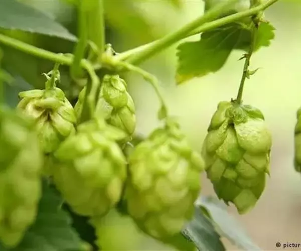 啤酒花(学名:Humulus lupulus Linn. )是桑科,葎草属多年生攀援草本植物,茎、枝和叶柄密生绒毛和倒钩刺。叶片卵形或宽卵形,先端急尖,基部心形或近圆形,边缘具粗锯齿,表面密生小刺毛,叶柄长不超过叶片。雄花排列为圆锥花序,花被片与雄蕊均为5;雌花每两朵生于一苞片腋间;苞片呈覆瓦状排列为一近球形的穗状花序。果穗球果状,瘦果扁平,花期秋季。