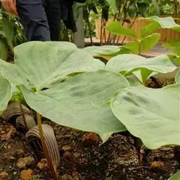 草本,有球形块茎;叶为叉指状复叶,于花后抽出,阔大;花序高大,上部的为雄花,…