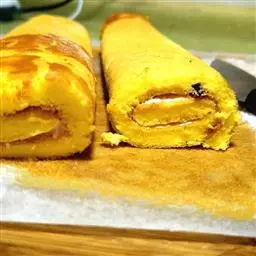 8.用两片姜将煎锅擦拭一遍