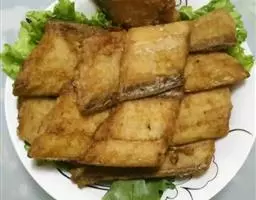 11.煎至鱼块表面金黄、鱼鳞卷曲,盛出待用
