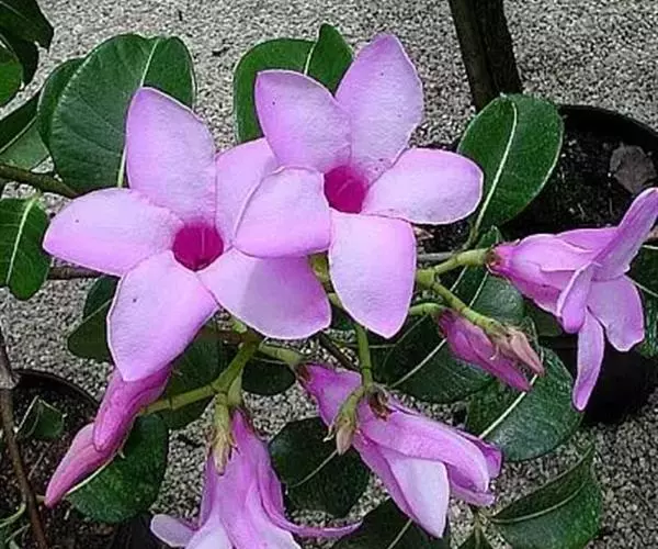 木质藤本;叶对生;花大而美丽,数朵排成顶生的聚伞花序;萼片披针形;花冠漏斗状,裂片5;副花冠的鳞片锥尖,全缘或2裂;花药与柱头合生;蓇葖粗厚,广歧,有3翅。