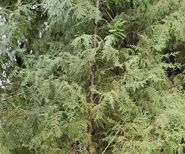 乔木,高达35米,胸径2米;树皮淡褐灰色,裂成窄长条片;小枝细长下垂,生鳞叶的小枝扁,排成一平面,两面同形,绿色,宽约1毫米、较老的小枝圆柱形,暗褐紫色,略有光泽。