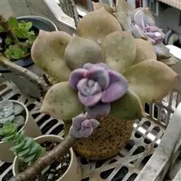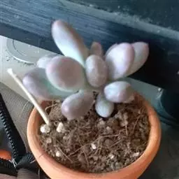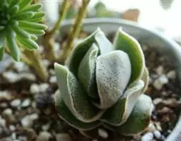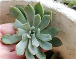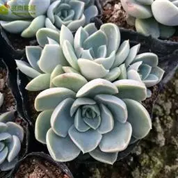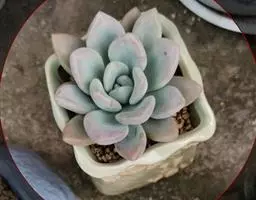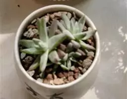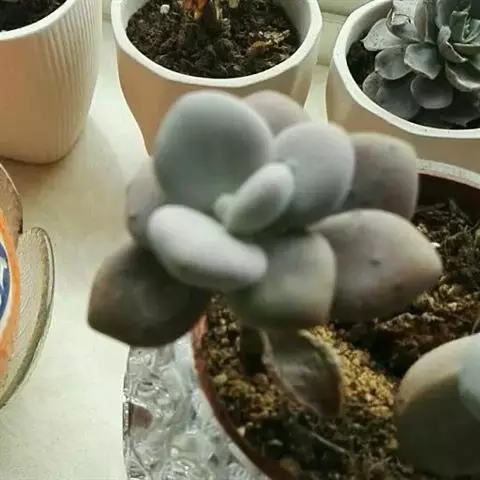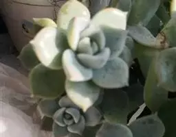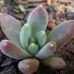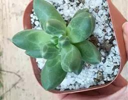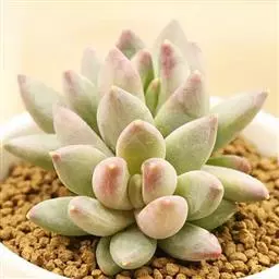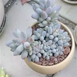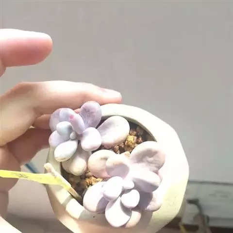 最常见的三种美人:东美人、白美人和青星美人 东美人 Pachyveria pachyphytoides Walth也被叫做冬美人,为景天科厚叶草属和石莲花属杂交培育的园艺品种,通常被当做厚叶草属,是比较常见的美人系列多肉植物,容易群生,容易养护,有时候一些街边巷尾老房子里甚至可以看到它的踪迹,是国内分布最广的多肉植物之一。东美人随季节和养护环境的不同,形态会比较多变,颜色可以有粉蓝、粉白、粉红,粉黄各种颜色的变化。