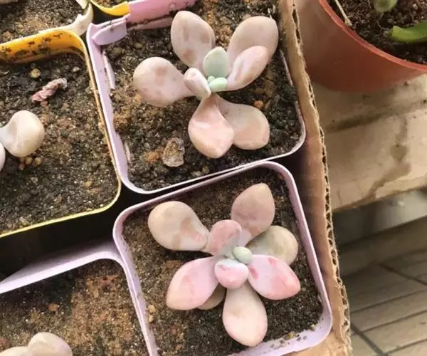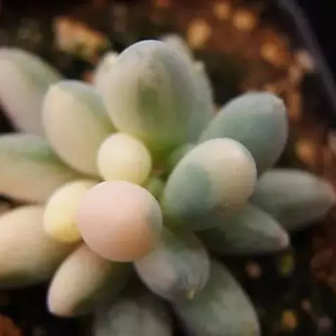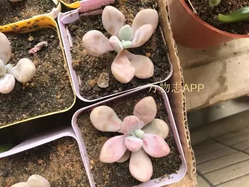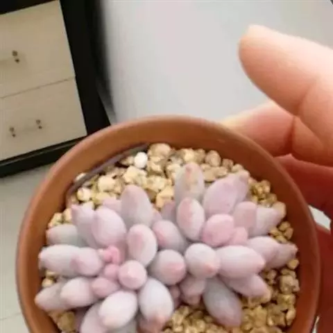 月美人 Pachyphytum oviferum cv. Tsukibijin景天科厚叶草属多肉植物,tsuki正是月亮的意思,和桃美人系出一门,也是星美人的园艺品种,两者经常被搞混。月美人比桃美人有着更加粉嫩红色的漂亮叶片,圆而饱满,相比桃美人粉更少点。据说桃之卵的真身就是月美人。