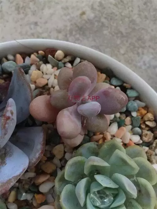 醉美人 Graptopetalum amethystinum,和其他的美人不同的是,它不是厚叶草属,而是风车草属,虽叶型与厚叶草属雷同,但开出来的花却不折不扣的是风车草属。 醉美人和桃美人相似,颜色相比桃美人会更粉嫩些,也更圆润些。