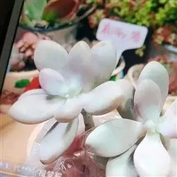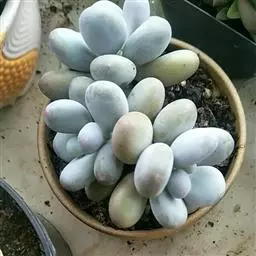星美人 Pachyphytum oviferum 'HOSHIBIJIN'为景天科厚叶草属多肉植物,因身披白粉的关系,习惯称呼其为白美人,星美人叶片短小肥厚,天生白,株型紧致,是上述三个美人中身材起点最高的一个。