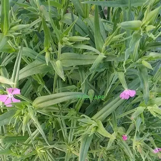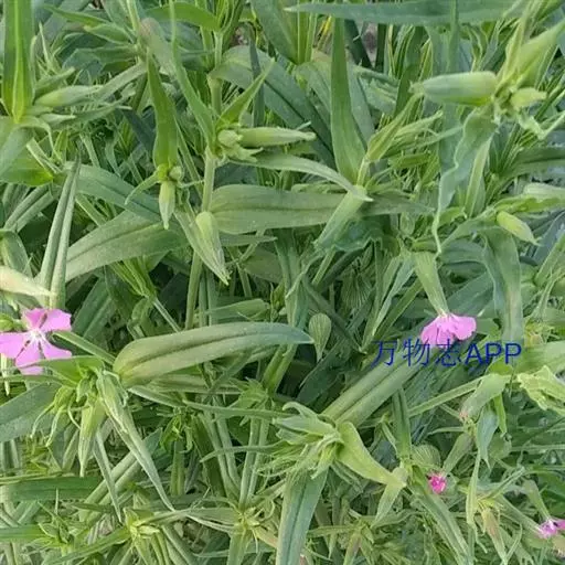 麦瓶草:一年生草本,高20-60cm。全株被腺毛。主根圆柱细长。茎直立,节明显而膨大,叉状分枝。基生叶匙形;茎生叶对生,椭圆披针形或披针形,长5-8cm,宽5-10mm,先端钝尖,基部渐窄,全缘。花两性;1-3朵成顶生及腋生聚伞花序,花梗细长;花萼长锥形,上端窄缩,下部膨大,有30条明显细脉,先端5齿裂;花瓣5,粉红色,三角倒卵形,长于萼,喉部有2鳞片;雄蕊10;子房上位,花柱3,细长。蒴果卵形,3-6齿裂或瓣裂,包围于长锥形宿萼中。种子肾形,有成行的瘤状突起,以种脐为圆心,整齐排列成数层半环状。花期4-5月,果期5-6月。