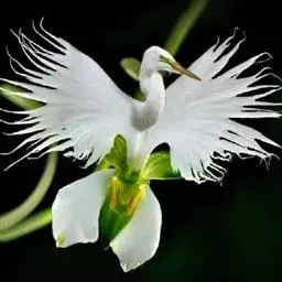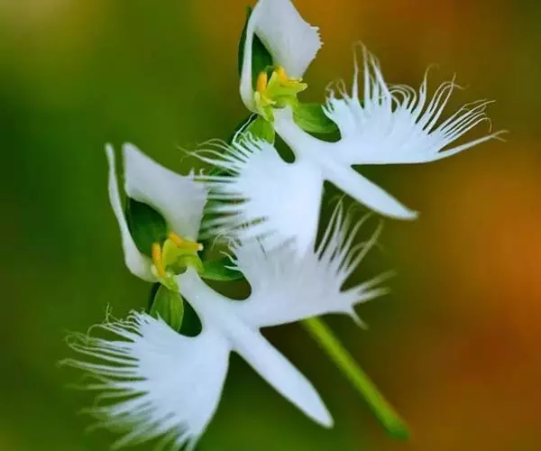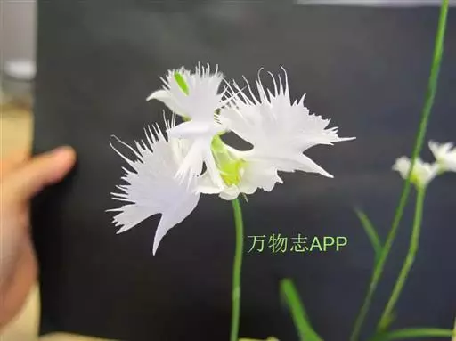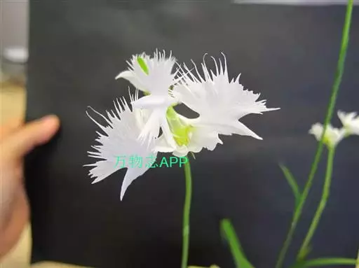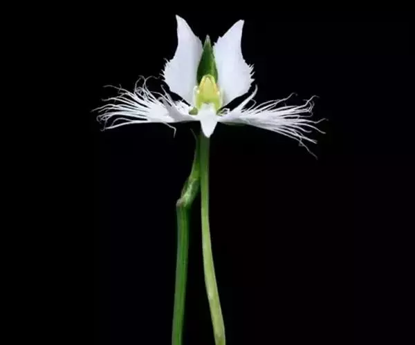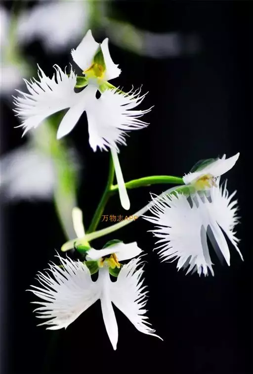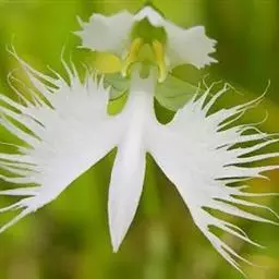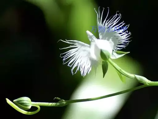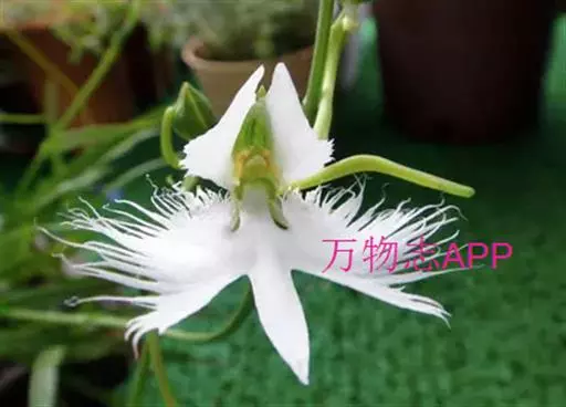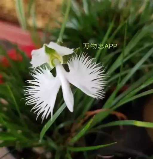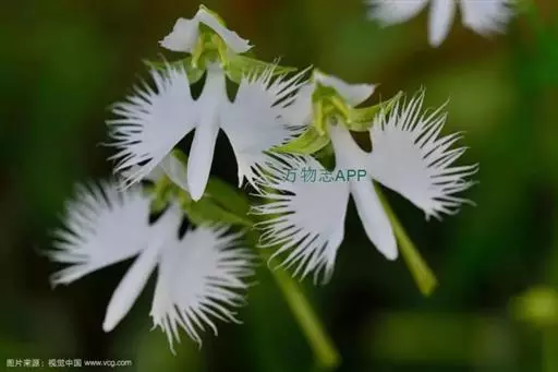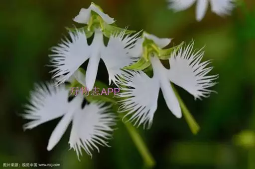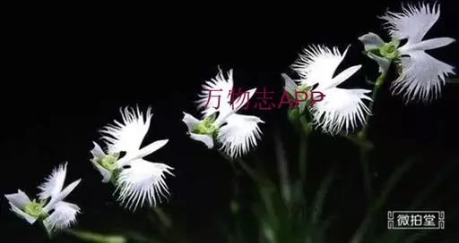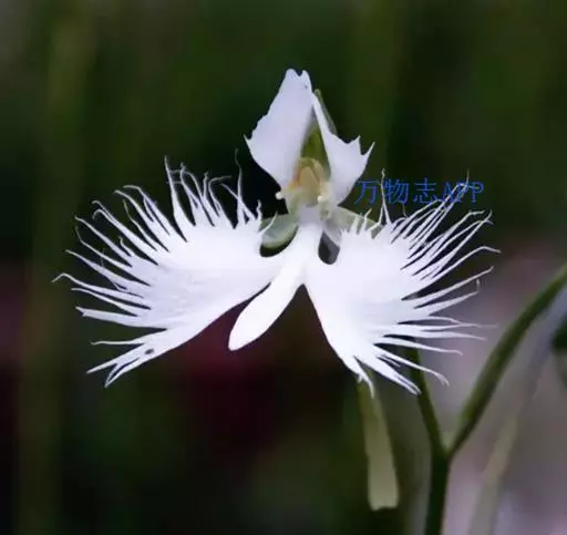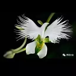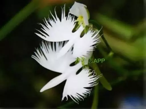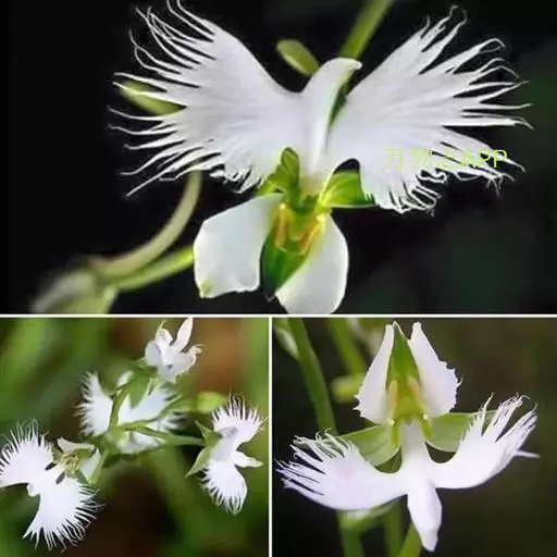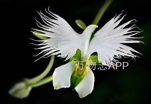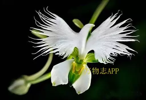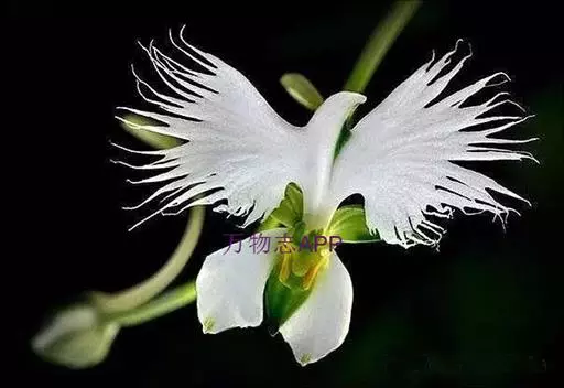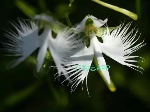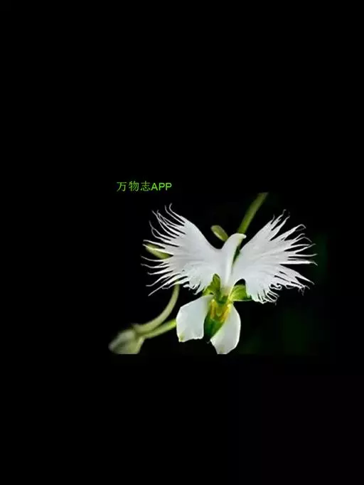 狭叶白蝶兰(学名:Pecteilis radiata (Thunb.) Rafin.):植株高18-35厘米。块茎椭圆形或近球形,肉质。茎细长,直立,基部具3-5枚叶。叶片线形,长5-10厘米,宽3-6毫米,向上伸展,先端渐尖,基部成抱茎的鞘。总状花序具1-2朵花;花较小,直径约1.5-3厘米,白色;萼片淡绿色,狭卵形;花瓣白色,斜卵形,直立,长10-12毫米,先端近急尖,外侧边缘具齿或浅的流苏,与中萼片靠合呈兜状;唇瓣白色,短楔形,长约巧毫米,3深裂。花期7-8月。