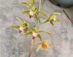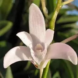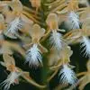 总状花序具1-2朵花;花苞片披针形,长7-12毫米,较子房短,先端渐尖;子房细圆柱形,扭转,无毛,连花梗长1.3-1.5厘米;花较小,直径约1.5-3厘米,白色;萼片淡绿色,狭卵形,长8-10毫米,先端钝,具5-7脉,中萼片近直立,侧萼片张开,偏斜。