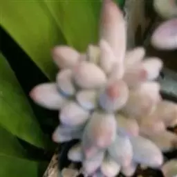 蓝黛莲是一种景天科厚叶草属植物。叶片呈略扁的圆柱形,排列成莲座状;颜色为灰绿色,…