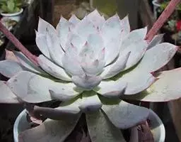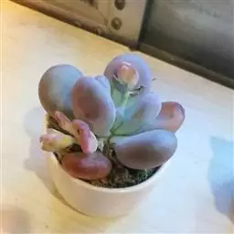 三月日美人为景天科厚叶草属一种多年生灌状肉质植物,为大家喜爱的肉肉美人系列品种之一,老茎木质化,直立,浅褐色带黄,茎高可达20厘米,直径约1厘米,肥厚饱满的肉质叶在老茎的枝端排列呈莲座状,卵形叶,具不明显的短叶尖,少被白色蜡质涂层,蓝绿色的叶片外缘在出装后呈粉红至紫红色;小花倒钟形,猩红色,在温暖的冬季至春季盛开。 三日月美人