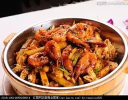 炒大虾是一道菜品,制作原料有大对虾、葱段、姜片等,用微火焖烤透,再将勺移正火,收汁微浓时放入味精,淋入香油即成。