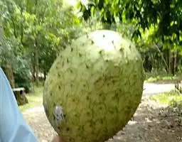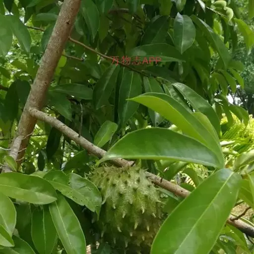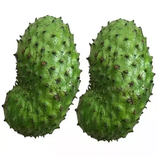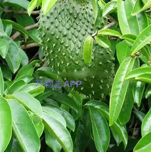 刺果番荔枝(学名:Annona muricata Linn. ),为毛茛目、番荔枝科 、番荔枝属的一种常绿乔木。高达8米;树皮粗糙。叶纸质,倒卵状长圆形至椭圆形,叶面翠绿色而有光泽,叶背浅绿色,两面无毛。花蕾卵圆形;花淡黄色;萼片卵状椭圆形,宿存;外轮花瓣厚,阔三角形;雄蕊花丝肉质,药隔膨大;心皮被白色绢质柔毛。果卵圆状,深绿色,果肉微酸多汁,白色;种子多颗,肾形,棕黄色。花期4-7月,果期7月至翌年3月。