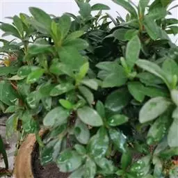 栀子花,花朵簇状约30枚瓣,奶油色,中心黄色;花径12cm;气味果香.