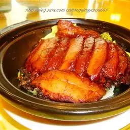 梅菜扣肉,汉族传统名菜,属客家菜 。制作材料有五花肉、梅菜、葱白、姜片等。