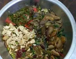 宫保鸡丁盖饭是一道简单的家常饭,主料是鸡胸肉、青笋、胡萝卜、大蒜、葱、干辣椒、盐、味精、胡椒粉、糖、醋、老抽、料酒、淀粉,热白饭一碗。