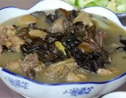 • 小鸡炖蘑菇是一道东北炖菜。通常是用干蘑菇、鸡肉和粉条一同炖制而成。榛蘑可以衬托出鸡肉的鲜香,粉条滑…