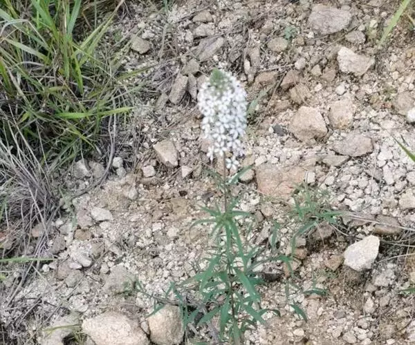 总状花序顶生,初时因花密集而成圆头状,后渐伸长,果时长4-13厘米;苞片钻形。长5-6毫米;花梗长5-10毫米;花萼长2.5-3毫米,下部合生达全长的1/3或近1/2,裂片狭三角形,边缘膜质;花冠白色,长约5毫米,基部合生仅0.3毫米,近于分离,裂片匙形或倒披针形,先端圆钝;雄蕊比花冠短,花丝贴生于花冠裂片的近中部,分离部分长约0.5毫米;花药卵圆形,长约1毫米;花粉粒具3孔沟,长球形 [(23.5-24.5) × (15-17.5)微米],表面具网状纹饰;子房无毛,花柱长约2毫米。蒴果球形,直径2-3毫米。