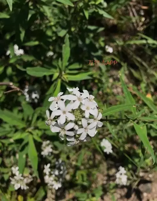 狭叶珍珠菜(Lysimachia pentapetala Bunge),报春花科 Primulaceae珍珠菜属 Lysimachiad的一年生草本,全体无毛。茎直立,高30-60厘米,圆柱形,多分枝,密被褐色无柄腺体。叶互生,有褐色腺点;叶柄短,长约0.5毫米。总状花序顶生,花梗长5-10毫米;花冠白色,雄蕊比花冠短,花丝贴生于花冠裂片的近中部,花药卵圆形,蒴果球形,直径2-3毫米。产于我国东北、华北地区以及甘肃、陕西、河南、湖北、安徽、山东等省。生于山坡荒地、路旁、田边和疏林下。