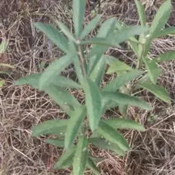 叶互生,狭披针形至线形,长2-7厘米,宽2-8毫米,先端锐尖,基部楔形,上面绿色,下面粉绿色,有褐色腺点;叶柄短,长约0.5毫米。