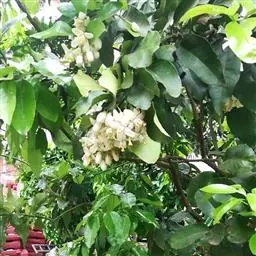 总状花序,稀少或单花腋生;花萼无毛;花瓣比柚花的稍小。果扁圆至圆球形,比柚小,果皮也较薄,果顶有或无环圈,瓢囊12-15瓣,果心充实,绵质,果肉淡黄白或粉红色,柔嫩,多汁,爽口,略有香气,味偏酸,个别品种兼有苦及麻舌味;种子少或无,多胚。果期10-11月。