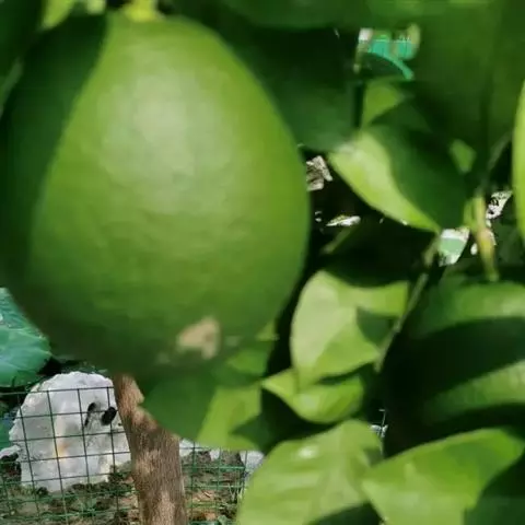 沙田柚,芸香科柑橘属乔木。树干较高,枝叶繁茂,嫩枝扁且有棱,叶质颇厚且为浓绿色,…