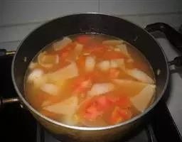 之前不要放下冰糖,等最后味道出来后再放冰糖调整味道。