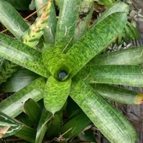 彩叶凤梨 L.B.Sm.) 凤梨科多年生常绿草本。株高25-30厘米,茎短。叶革质,带状,常基生,…