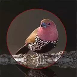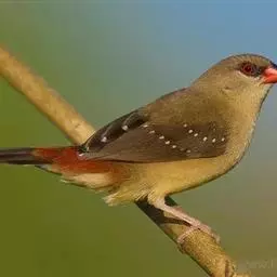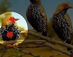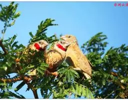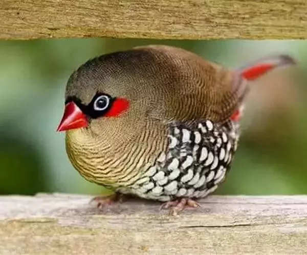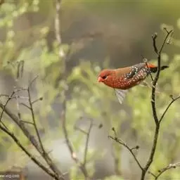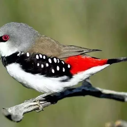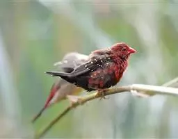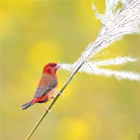红梅花雀小型鸟类,体长9-10厘米。雄鸟通体朱红色,背、肩、胸等满布白色小斑点,…