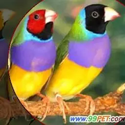 七彩文鸟是梅花雀科、鹦雀属鸟类。头部羽色有黑、红、黄之别。幼鸟体色初期为灰色,下部较淡,…