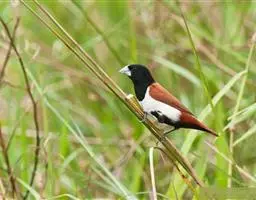 草雀,英文名:Zebra Finch 。属于梅花雀科鹦雀,生活在大洋州河流附近的开阔地带。品种多样,如灯芯草雀 、斑胸草雀、黑喉草雀等。形态小巧,美丽可爱,身上同时有许多颜色,深受人们喜爱。