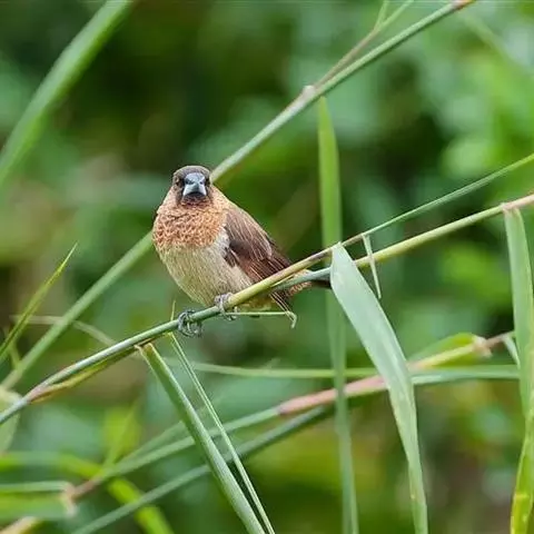 栗腹文鸟:小型鸟类,体长10-12厘米。嘴蓝灰色,基部粗厚,先端尖、呈圆锥状, 脚亦为蓝灰色,整个…