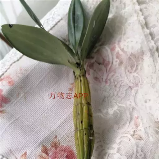 短棒石斛:茎肉质状,近扁的纺锤形,不分枝,具多数钝的纵条棱和少数节间。叶2-4枚近茎端着生,革质,…