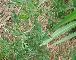 多年生 直立草本或半灌木,高约1-1.5米。主根粗壮,木质,棕黑色,有多数须根。茎棕黄色,微有纵纹,幼时微被曲柔毛,后脱落至近于无毛,髓部白色,中空。单叶对生;叶片卵圆形至菱状椭圆形,长7-14厘米,宽6-11厘米,顶端短尖或钝尖,基部宽楔形,边缘全缘,两面无毛仅边缘有曲柔毛,基出主脉3-5条,表面平坦,背面隆起;无叶柄,抱茎。