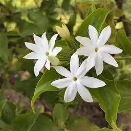 素馨花,又叫大花茉莉,直立灌木。枝条下垂,有角棱。叶片对生,羽状复叶,小叶5~7枚,椭圆形或卵形,先端渐尖。花单生或数朵成聚伞花序顶生,白色,有芳香。花期为6~7月。产于云南、广西。越南、缅甸、斯里兰卡和印度均有分布。