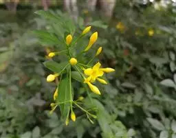 探春花,又叫迎夏,半常绿灌木。枝条开张,拱形下垂。奇数羽状复叶互生,小叶3~5枚,卵形或椭圆形。花黄色,成顶生多花的聚伞花序。浆果椭圆状卵形,绿褐色。花期5月,果期12月。原产我国中部及北部。