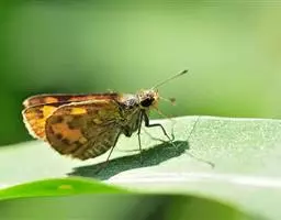姜弄蝶 Udaspes folus ,又叫银斑姜蝶。幼虫吐丝粘叶成苞,隐藏其中取食,…