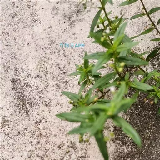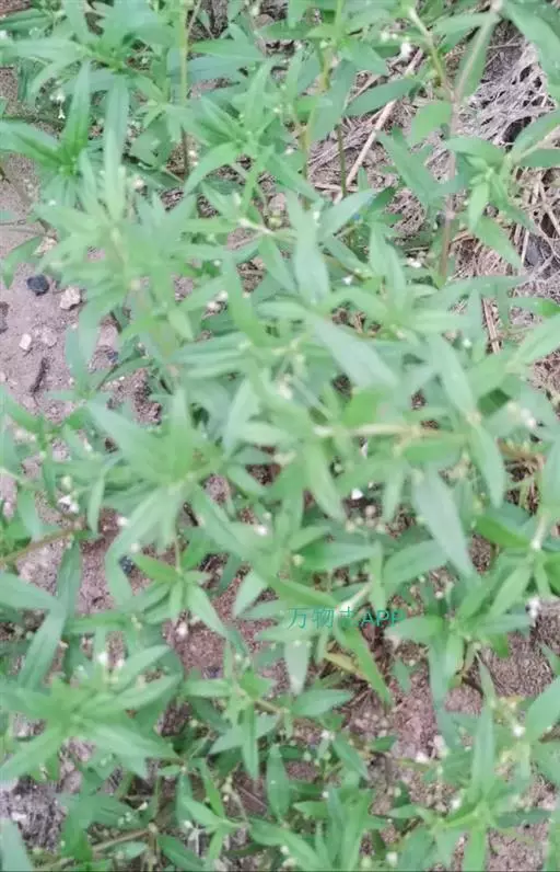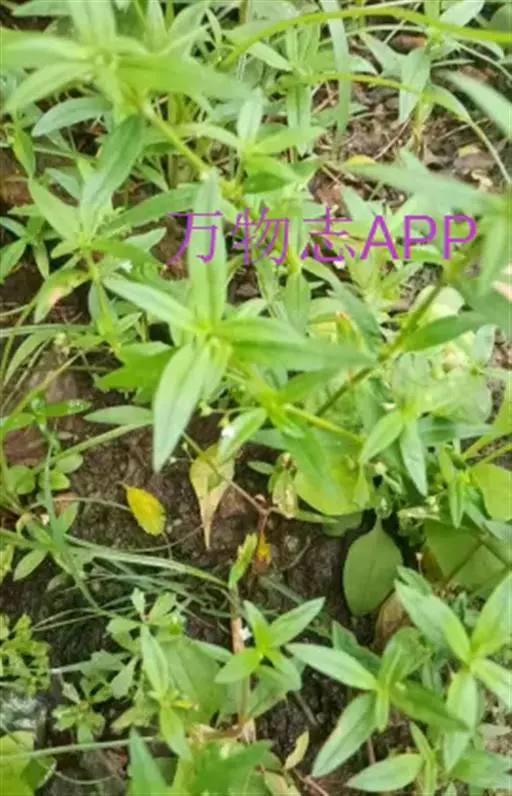 多年生草本,高30-100cm。茎近直立或平卧,小枝密被短粗毛,幼时近四棱柱形,老时圆柱形,节上常生根。叶对生;叶柄长2.7mm,托叶膜质,被毛,合生成一短鞘,先端5-7裂成刚毛状;叶片近革质,披针形或椭圆形,长3-8cm,宽1-2.5cm,先端急尖或渐尖,基部楔形或微下延,上面平滑或粗糙,下面常被粉末状短毛,侧脉4-6对。聚伞花序密集成头状,腋生;无总花梗;苞片披针形,微小;花4数,近无梗;萼筒长1mm,被毛,裂片披针形,长1-1.2mm;花冠白色,长2.5-3mm,裂片长1.5-1.8mm,广展;雄蕊生于花冠筒喉部,花药伸出;柱头2裂。蒴果球形,直径1.2-1.5mm,熟时不裂。种子每室2-6颗,种皮有小窝孔。花期春末夏初。