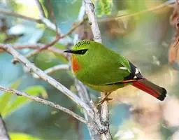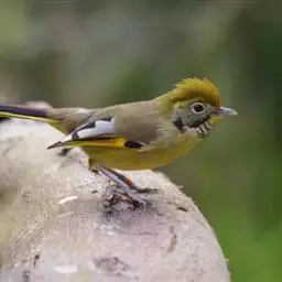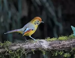 金头穗鹛小型鸟类,体长10~11厘米,是一种黄色小鸟。头顶金黄色有黑色纵纹,眼先黑色,…
