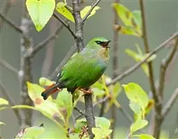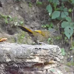 结小群活动,从一浓密覆盖处滑翔至另一处。典型的藏隐于灌丛、林边及竹林密丛。发几种带变音的响亮叫声;哨音too-rit-a-reill回应、wroo-wro及变音;嘶嘶哨音,不停唧唧咯咯地叫;告警时发出颤鸣声。
