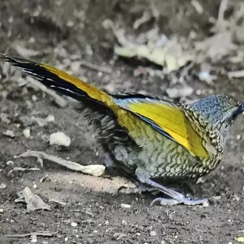 蓝翅噪鹛:噪鹛科、彩翼噪鹛属动物。中型鸟类,体长22-25厘米。上体棕橄榄褐色密被黑色鳞状斑,…