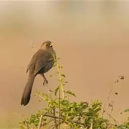 剑嘴鹛:中型鸟类,体长21-22厘米。嘴特别细长而向下弯曲,头顶和头侧烟灰色具长而窄的白色眉纹,…
