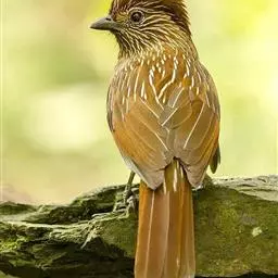 条纹噪鹛是画眉科、噪鹛属中型鸟类,体长28-32厘米。头具短的羽冠,上体栗褐色,飞羽外翻蓝灰色。…