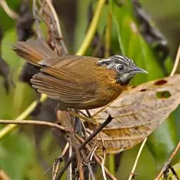 斑背噪鹛是噪眉科、噪鹛属中型鸟类,体长24-28厘米。额至头顶多为栗褐色,眼先、眼周和眼后纹均白色,…