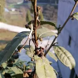 成年金花茶常见的病害有炭疽病、煤烟病、叶枯病、芽枯病等炭疽病是金花茶的常见病害,病斑是从叶尖或叶缘开始发生,病斑不规则,上面常有黑色小点,病健部分界明显。通常使用70%甲基托布津800倍稀释液在发病初期进行叶面喷施,5~7天一次,连喷3次。喷施量为每亩60公斤。煤烟病症状表现为叶片上有煤污状物,病菌也危害枝条和嫩梢,严重时枝、叶上布满黑色的煤污层,阻碍植株进行正常的光合作用。诱病害虫主要是蚜虫,可从防治蚜虫入手,用50%的乐果乳剂1000倍液喷洒防治。茶芽虫、卷叶虫、茶毒蛾等是金花茶的常见害虫,茶蚜虫和卷叶虫可使金花茶叶片卷曲萎缩,不能伸展。茶毒蛾则把叶片咬成缺块,或全部吃光,严重影响植株生长,在防治上应及早进行,可选用高效低毒低残留的菊脂乳油800倍液进行喷洒。