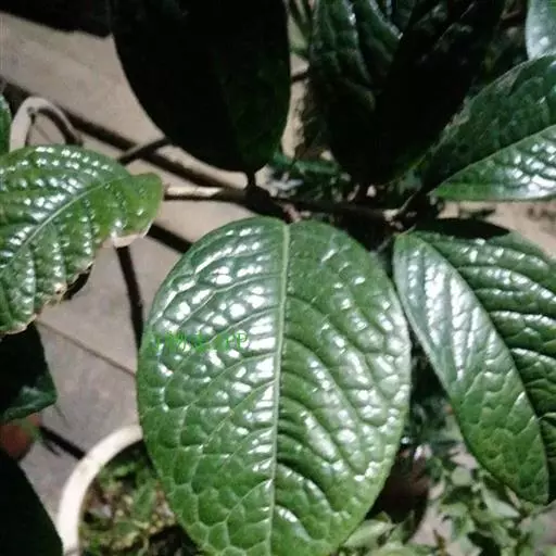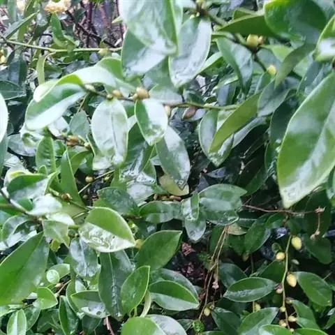 常绿灌木,高3米;嫩枝紫红色,无毛。嫩叶淡紫红色,老叶椭圆形或长椭圆形,先端急短尖,基部宽楔形或楔形。花为淡黄色,成顶生或腋生,花径 1.5-2厘米;花朵有花