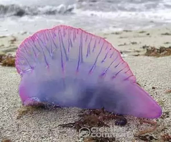 僧帽水母喜欢过集体生活,各四海都有它们的踪迹,从船上看去,景象非常动人:一个个透明的浮囊随彼逐流,蓝紫色的光彩在阳光下不停地闪烁着,长长的、柔就的触手象一条条美丽的绸带。它的外表虽然动人,但许多海生动物都不敢接近它,因为触手上布满了无数含毒的刺细胞,里面的毒液和眼镜蛇的毒液一样厉害。