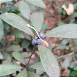 果广椭圆形,长0.8厘米,直径0.5-0.6厘米,成熟时红色,后变紫黑色,干时黑褐色。花期3-4月,果期8-9月。