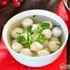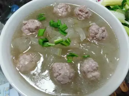5.吃时再放入靓汤中稍煮,配以少许生抽、芜荽等香料,那是色、香、味俱佳。在玉林,还有将此种肉丸配入米粉,或再加进一点点玉林特产“豉油膏”,这叫“肉蛋粉”,吃来更有地方风味。