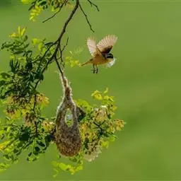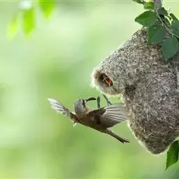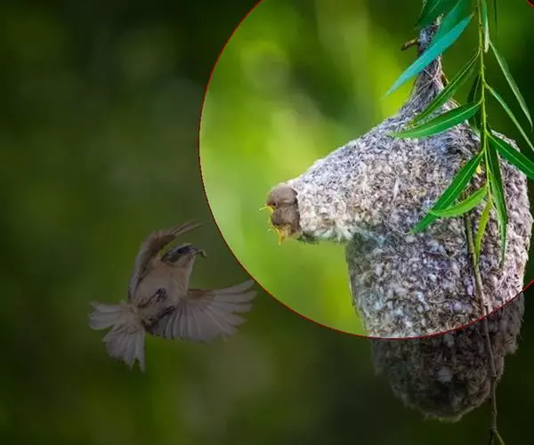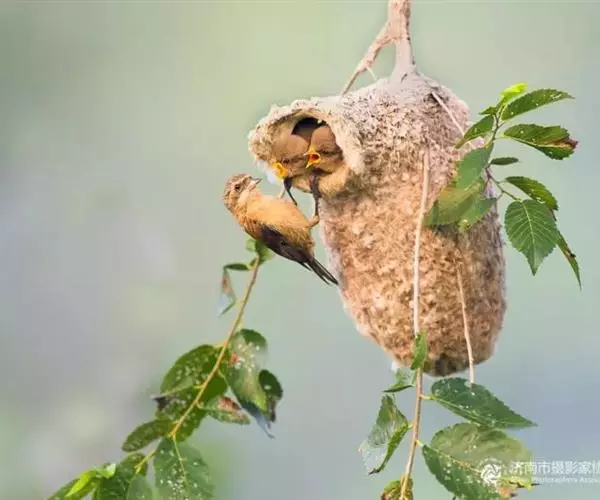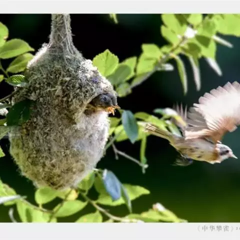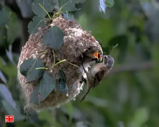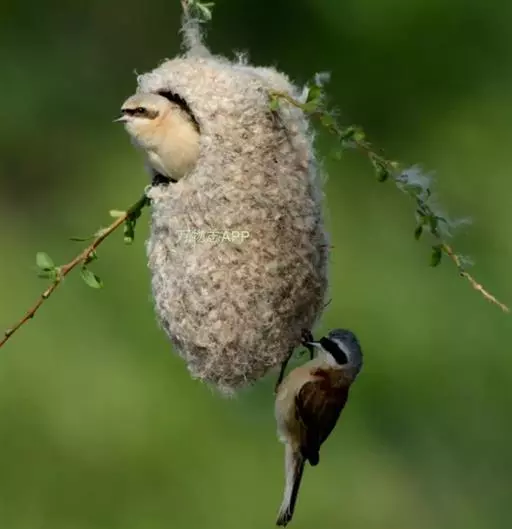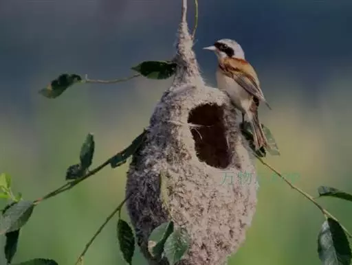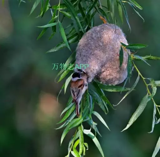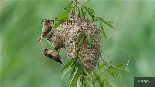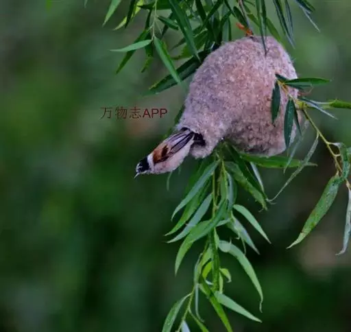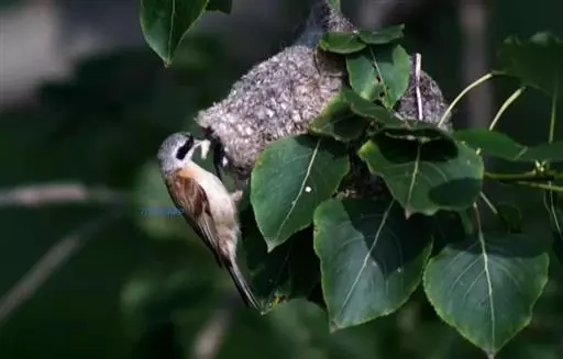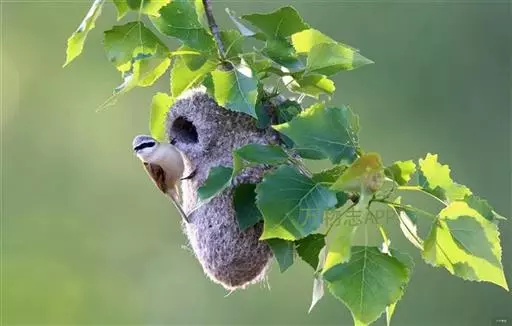巢呈囊袋状,主要由树皮纤维、羊毛、蒲绒、杨絮、柳絮等编织而成,结构相当精巧,悬吊于乔木柔软的细枝末梢,很像一个悬挂的葫芦。巢顶端侧面月一管状开口,供亲鸟出入。营巢基本完成,但以后仍不断在内壁用杨絮和柳絮加厚,直到产卵期间亦不停止。每个巢从开始营造到最后完成需要8-12天。巢的大小为长12-16.5厘米,宽8.4-10.5厘米,深8.5-10厘米,外径3-4.5厘米,巢口内径2-3.8厘米,巢口管长0.9-4厘米。